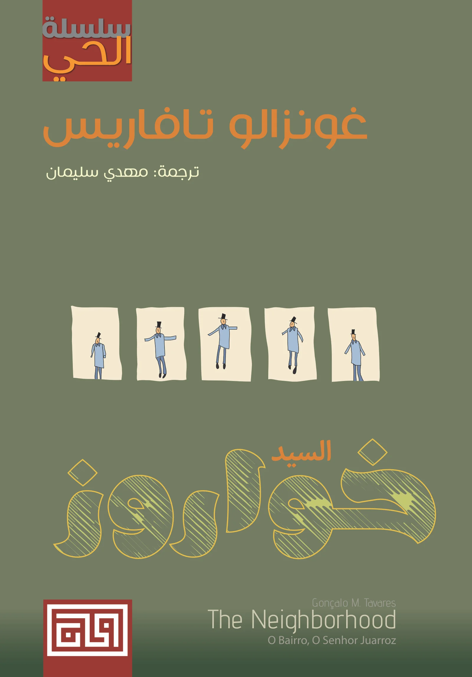 قد يكون خليق بنا أن نعرِّف القارئ الذي لم يسبق له الاطلاع على أعمال تافاريس الكاملة من خلال مناقشة الرسومات التي أبدعتها زوجة تافاريس وشريكته في الأعمال الأدبية لمدة طويلة، الفنانة راتشيل كايانو، وخصوصًا اللوحة التي رسمتها التي تمثِّل خريطة الحي، حيث يظهر فيها الشوارع الضيقة والمباني المتلاصقة التي تمثِّل حيًا تقليديًا في مدينة لشبونة. وقد رسمتْ كايانو في خريطتها التي أبدعتها في الطبعات الأولى من سلسلة «الحي» أربع شخصيات فقط من سكان الحي وهم السيد فاليري والسيد هنري والسيد بريشت والسيد خواروز، مع العديد من الشقق المحيطة بهم وهي فارغة من ساكنيها. ومع اتساع رقعة مشروع تافاريس الروائي، أضاف إلى الحي كل من السيد كالفينو والسيد كراوس ومن ثم السيد فالْسِر. وحتى تاريخ كتابة هذه السطور ينتشر، لحسن الحظ، على الخريطة التي رسمتها كايانو تسعة وثلاثون اسمًا. وبالرغم من أن عشرة من هؤلاء السادة فقط قد ظهروا حتى الآن بشكل كتب مستقلة (وبعضها ما يزال بانتظار ترجمته للإنكليزية)، فهي تمثِّل بمكنوناتها النمو المتواصل لسلسلة «الحي» في المستقبل.